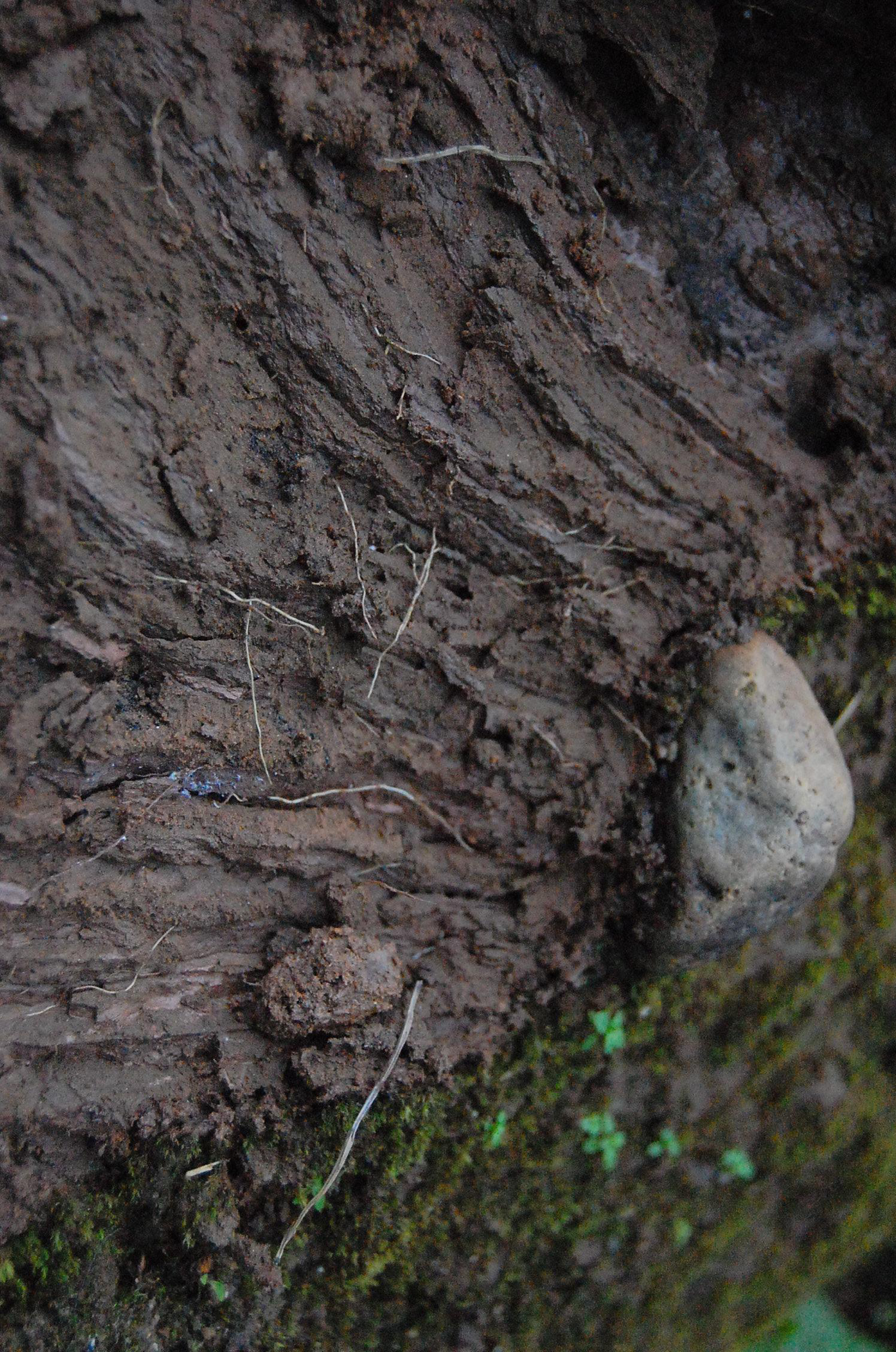 This is an example of raw clay turn to slip, allowed to sediment, then fired showing the range materials suspended in raw clay bodies.