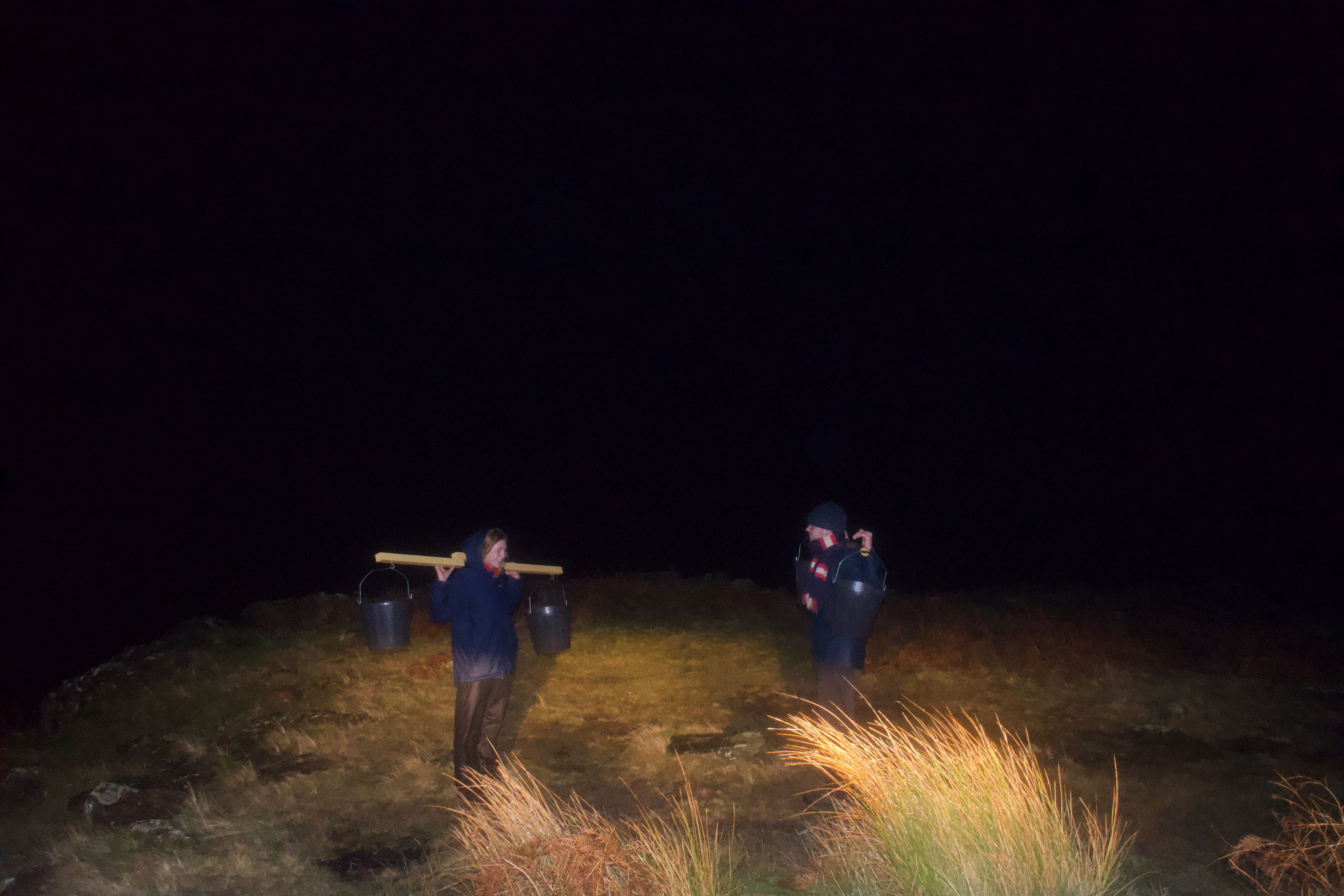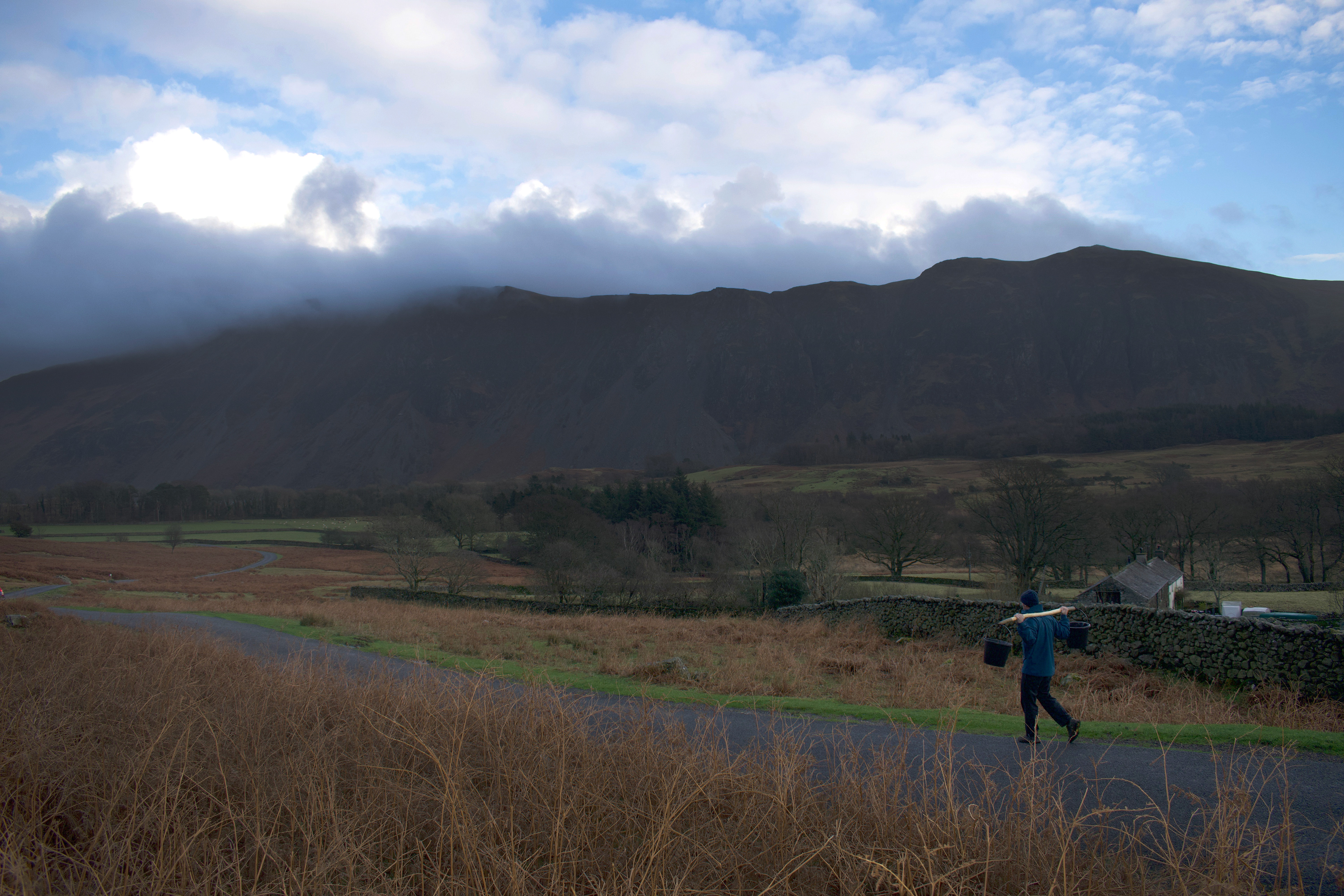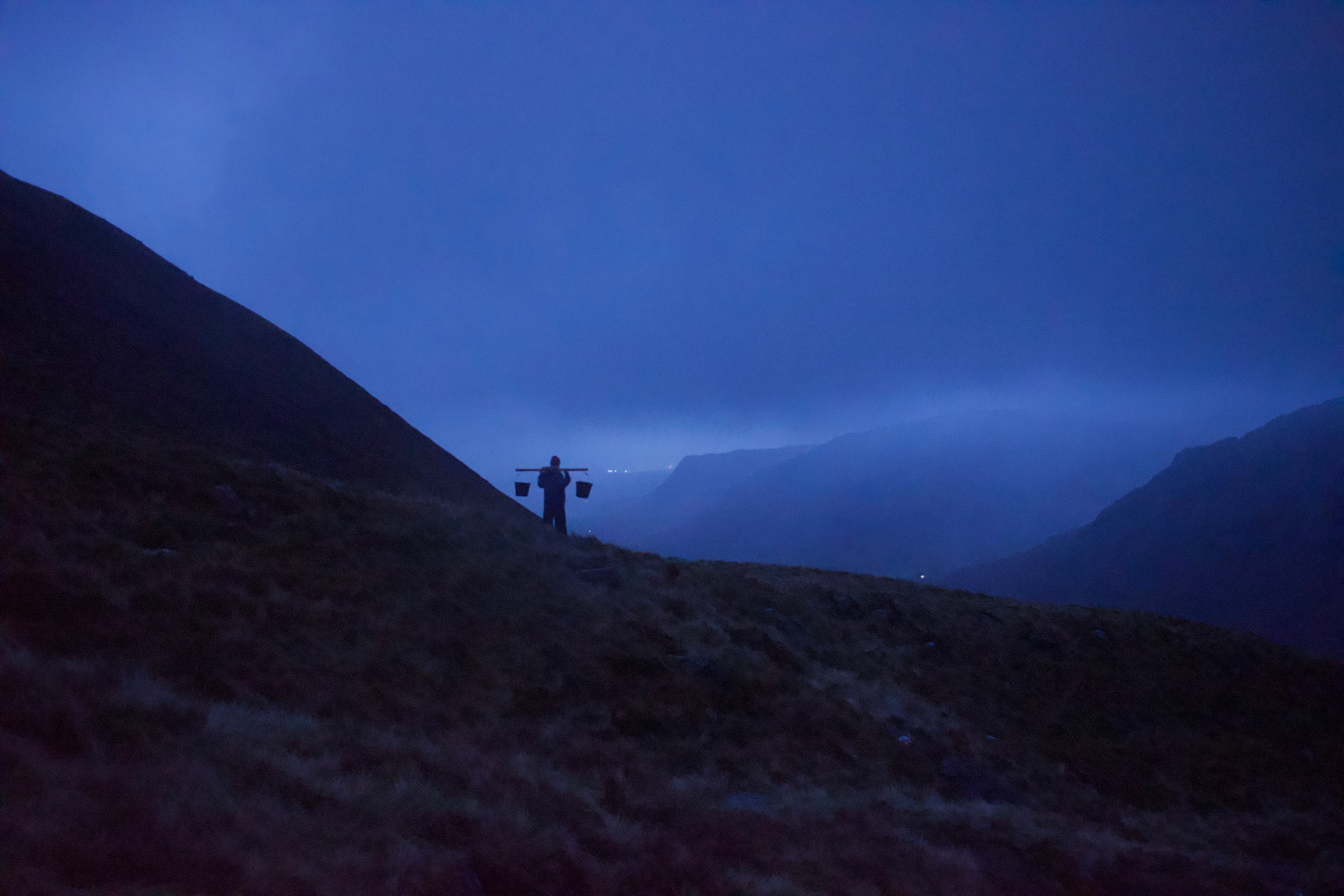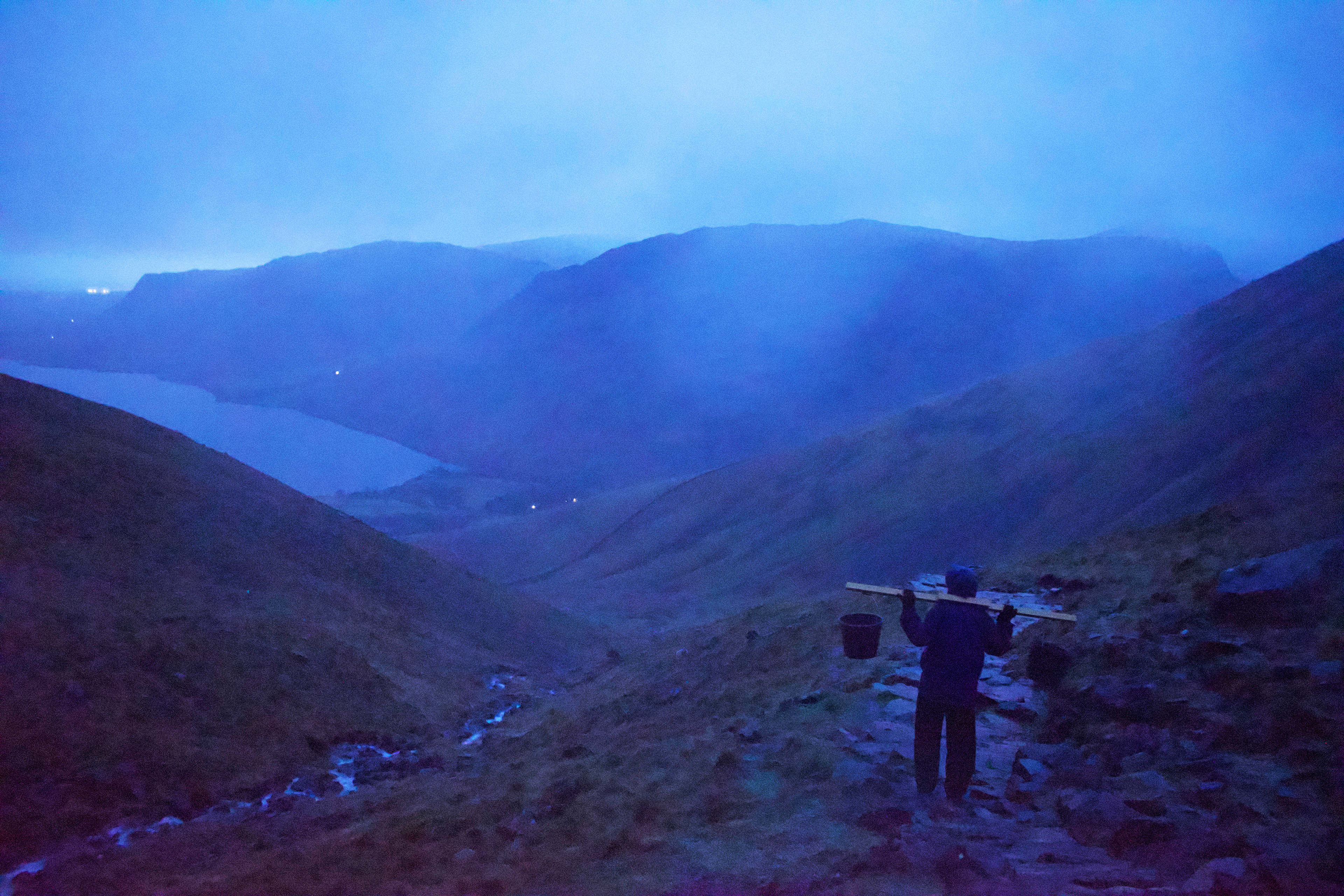 Meeting of waters: Manual transportation from Scafell Pike's snow line and Sellafield Nuclear site. 9 photographs documenting the work undertaken by